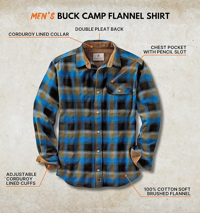The Legendary Whitetails Buck Camp flannel shirt in Charcoal Heather is a warm, soft, 100% cotton flannel designed as an everyday, casual outdoor shirt with a more “rugged classic” look than a basic plaid. It focuses on comfort, durability, and details like corduroy trims that help it feel more premium than many budget flannels.